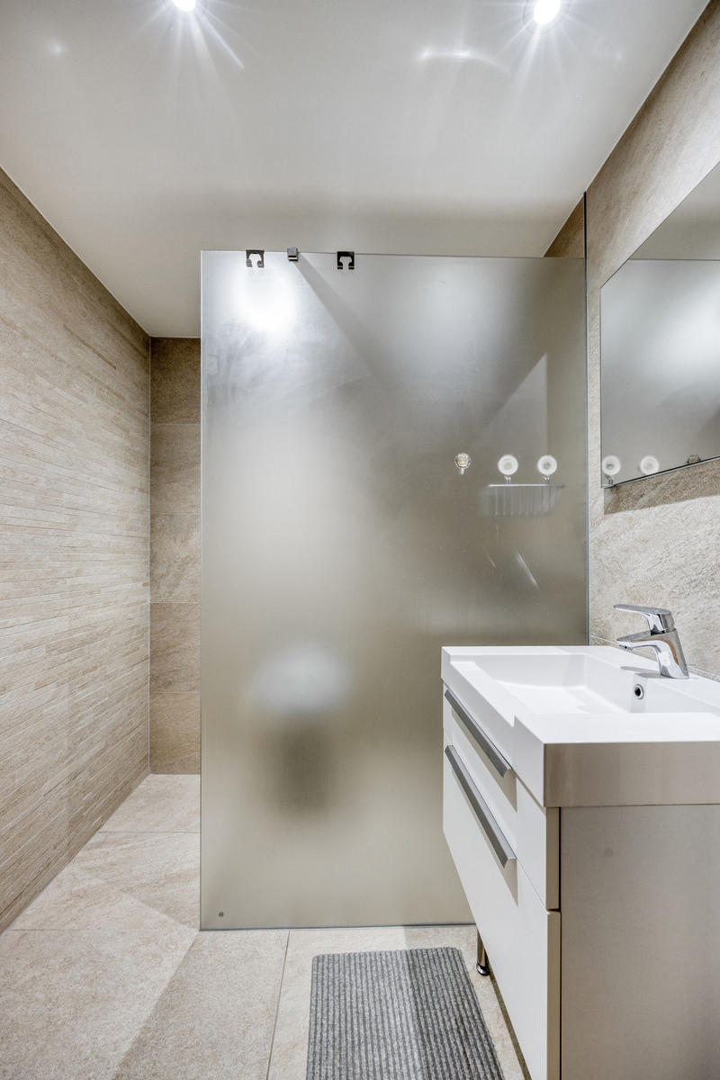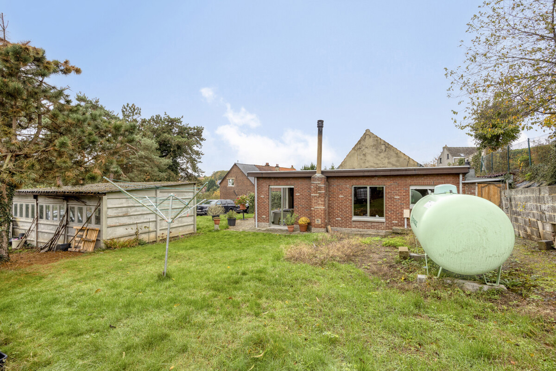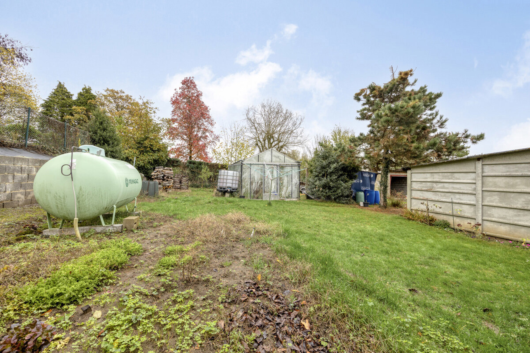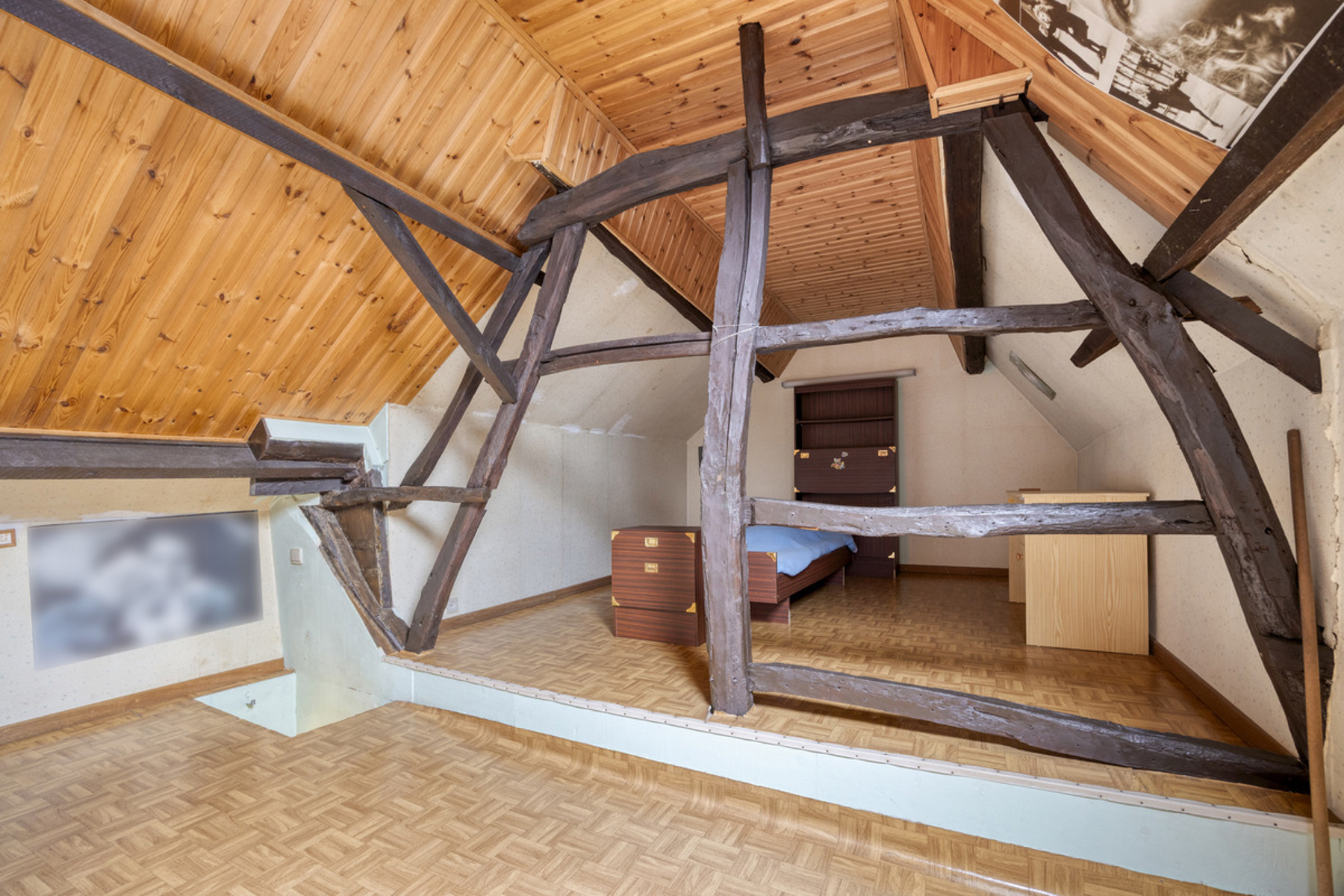 The property, situated on a plot of +/- 7a62ca, offers a living area of +/- 138m² and consists of: entrance hall – toilet – living and dining room with wood stove (+/- 26m²) with access to the south-facing terrace (+/- 14m²) and garden – kitchen (+/- 8m²) (sink, oven, induction hob, refrigerator) – bathroom (walk-in shower, sink) – 2 bedrooms (+/- 10m², +/- 14m²) – storage room (+/- 7m²) – laundry room (+/- 4m²).