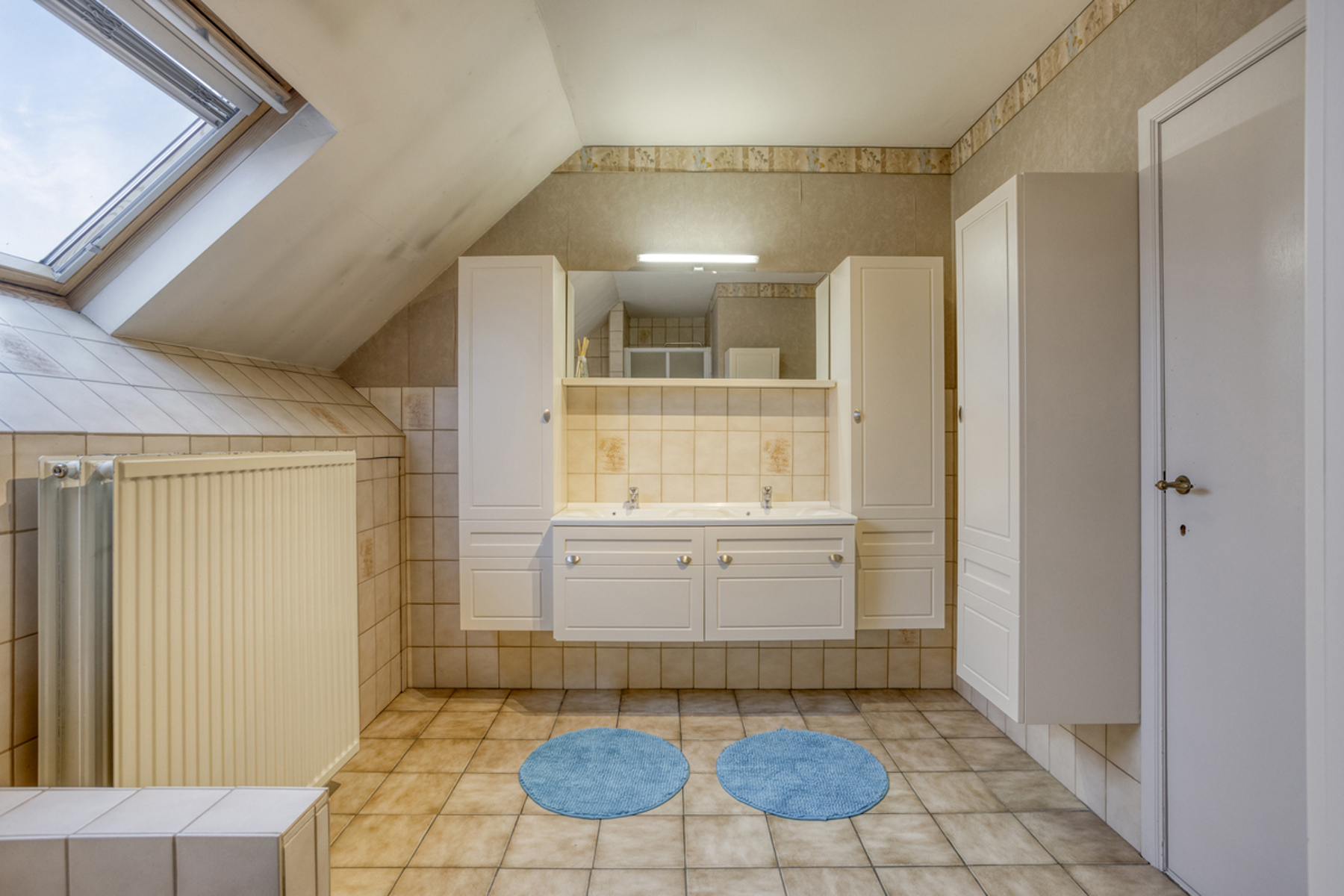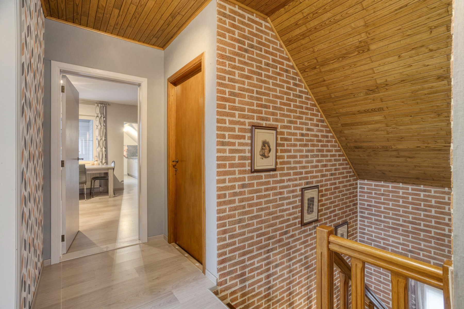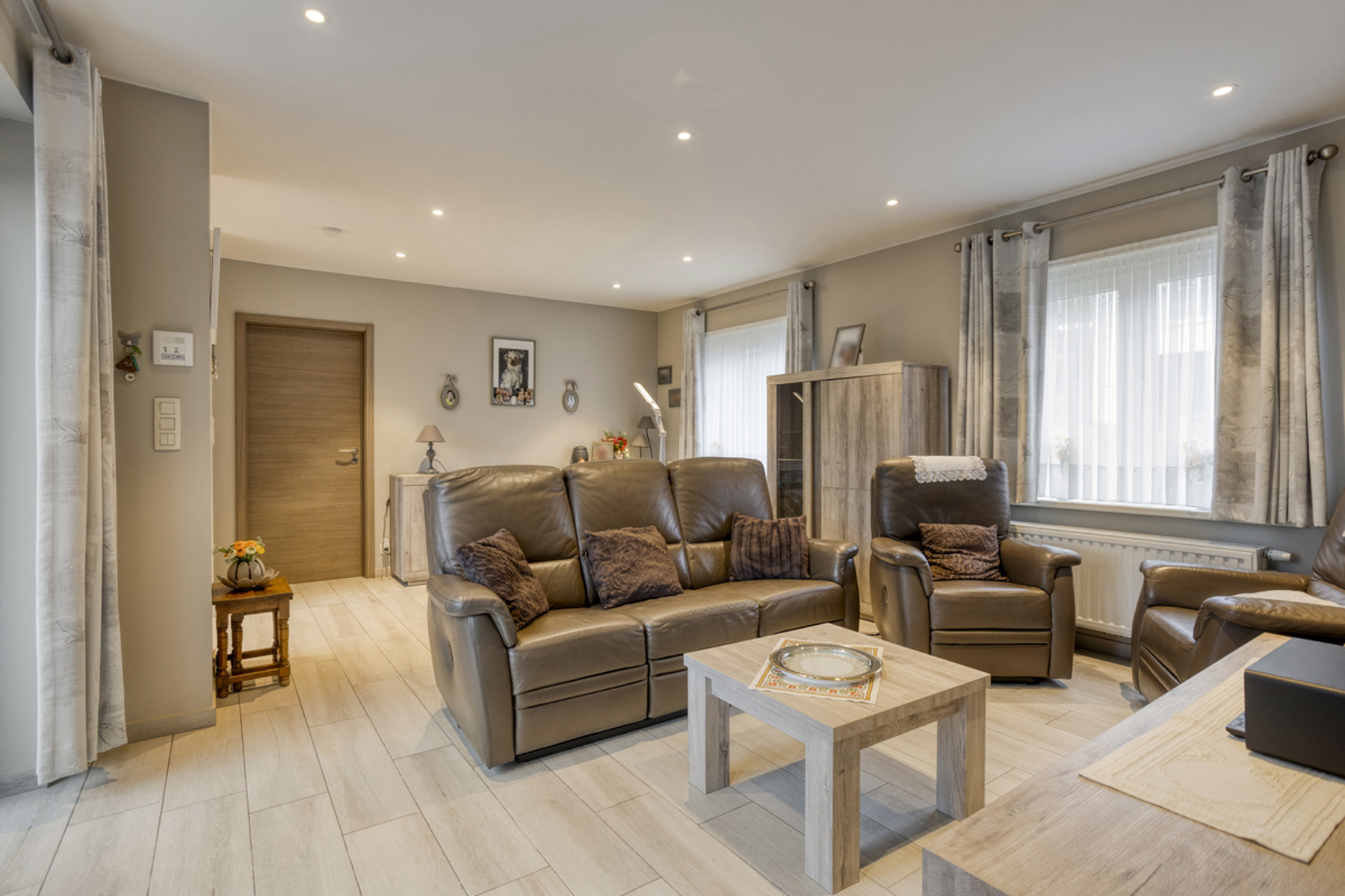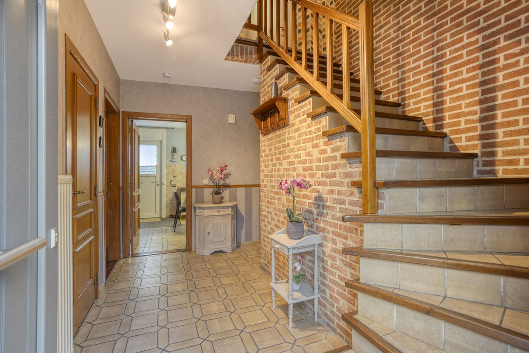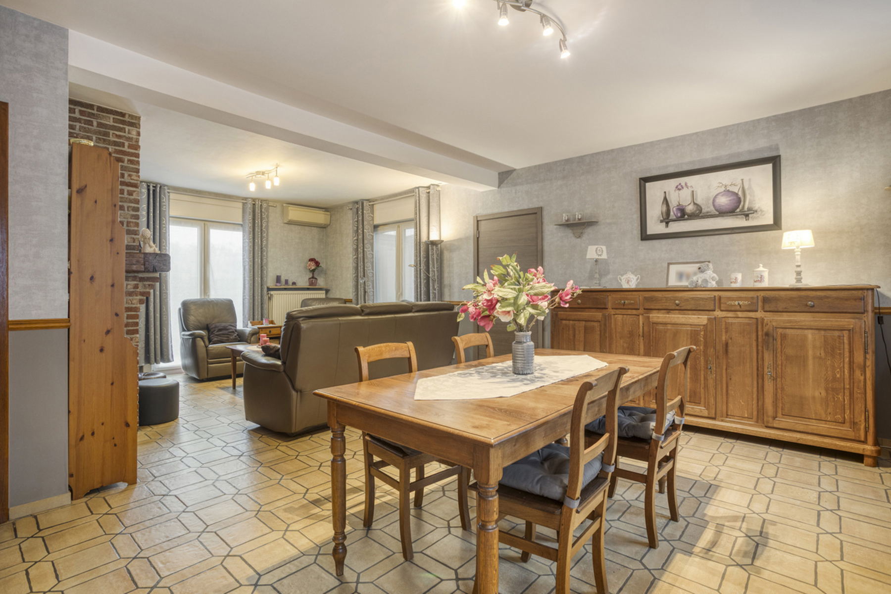 Additional information: terrace and garden facing south-east - awning - covered terrace (+/-10m²) - double garage with electric door - parking spaces in front of the house - gas heating - double glazing in wood and PVC - mosquito screens - shutters - rainwater tank - air conditioning - solar panels - PEB: 135 kWh/m².