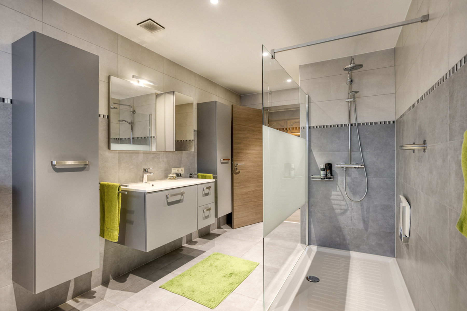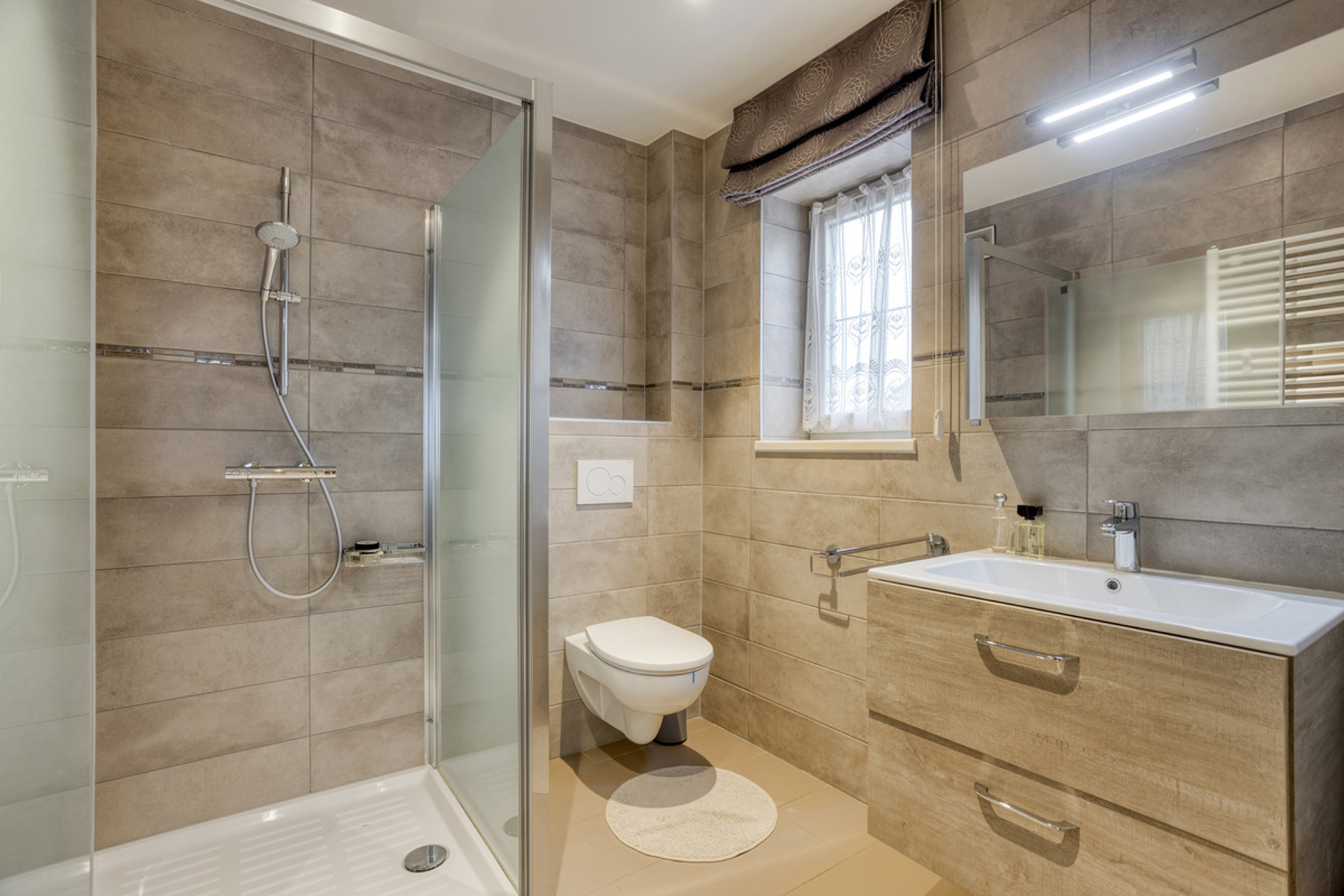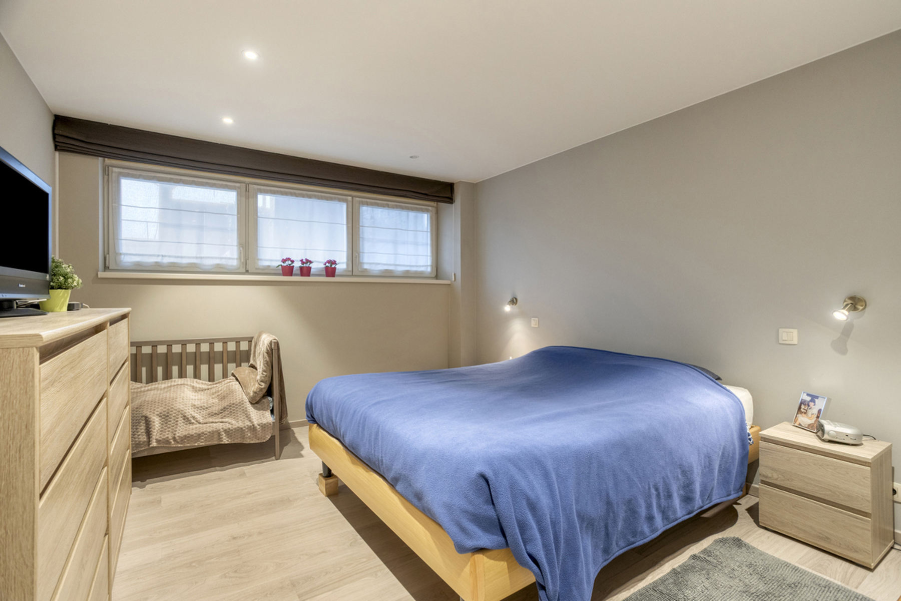 On level -1: night hall - bedroom (+/-14m²) with dressing room (+/-8m²) and bathroom (+/-12m²) (walk-in shower, washbasin and toilet) - laundry room (+/-22m²) - technical room - cellars - double garage (+/-29m²).