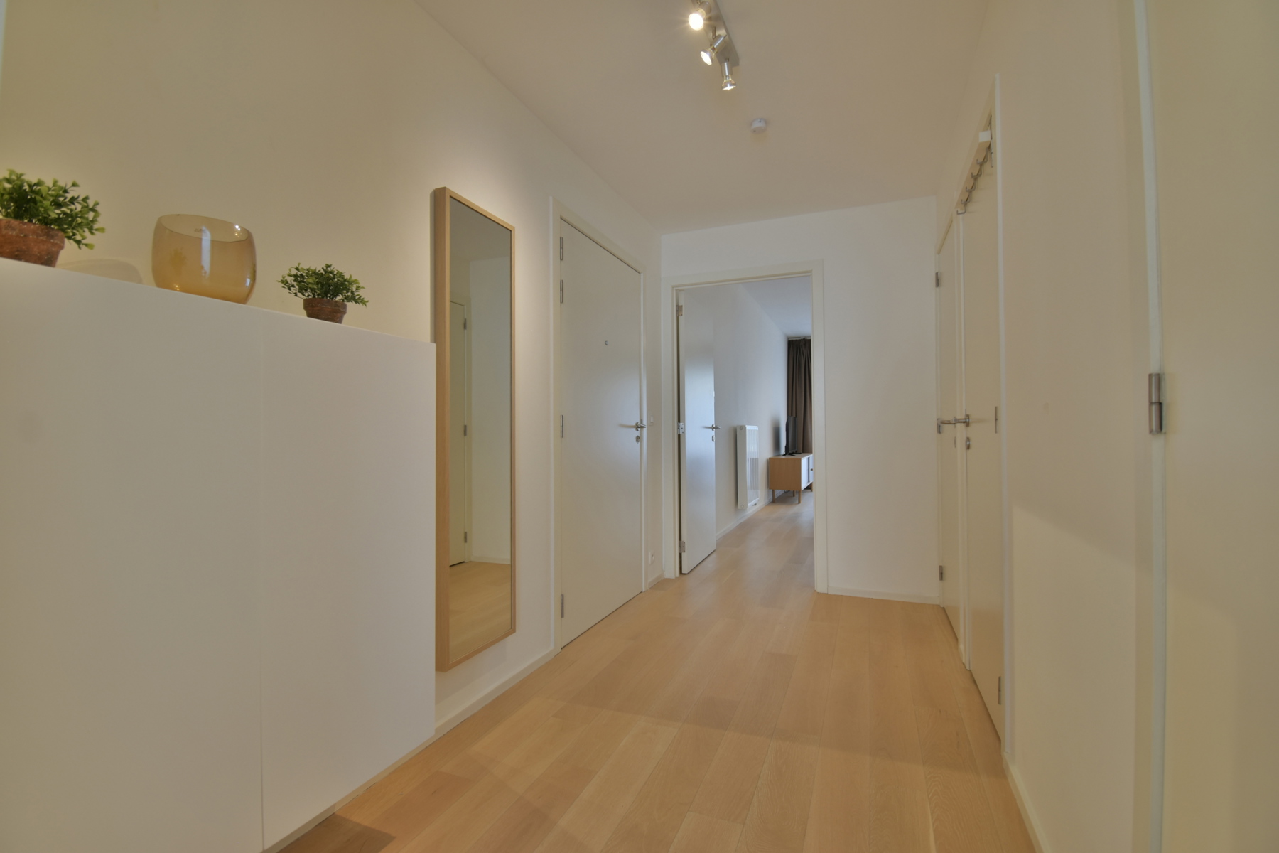 Additional information: gas heating – parking space for 1 car in the underground garage at €100/month – private cellar (+/-4m²) – elevator in the building – double glazing – monthly advance charges for heating, water, and common areas: €150 – southwest-facing terrace – EPC: 97 kWh/m² – fully FURNISHED – immediately available.