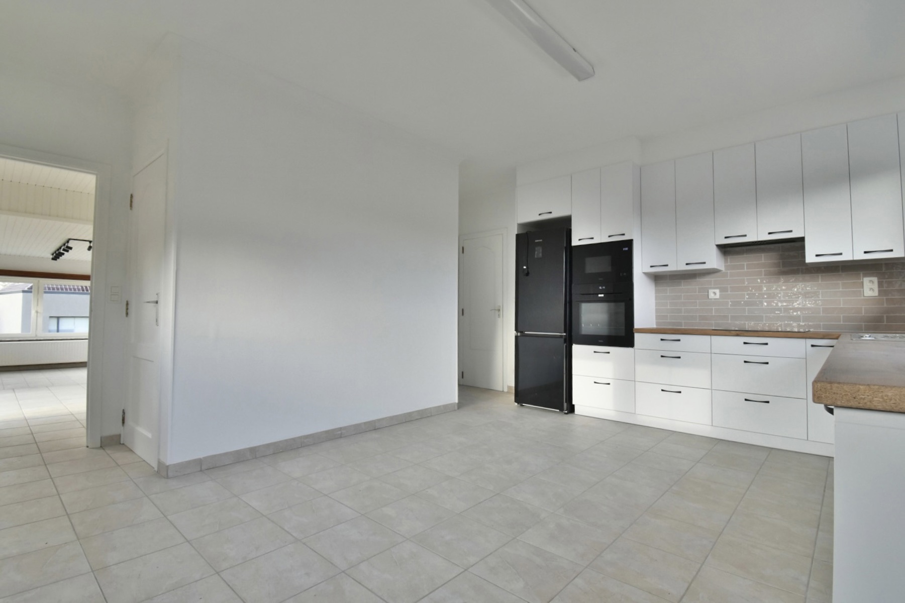 The property has a living area of +/- 222m² and consists of: night hall (+/- 11m²) - office/wardrobe space (+/- 6.5m²) - separate toilet with sink - living room (+/- 30m²) + dining room on a mezzanine level (+/- 19m²) with one door leading to the hallway with 2 bedrooms (+/- 14m², +/- 15m²), one of which has built-in wardrobes - new bathroom (walk-in shower, toilet, bathtub, sink) (+/- 7m²), and another door leading to the new kitchen (fridge, freezer, microwave, oven, cooktop, hood, dishwasher, sink) (+/- 19m²) with access to the southeast-facing terrace (+/- 43m²).