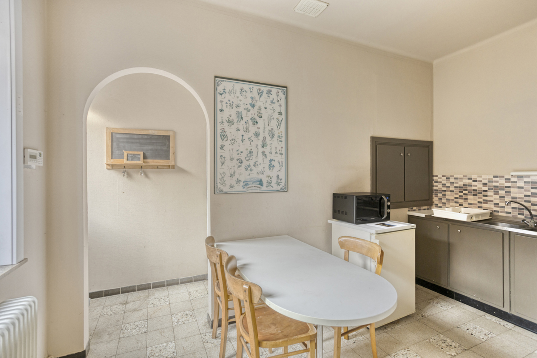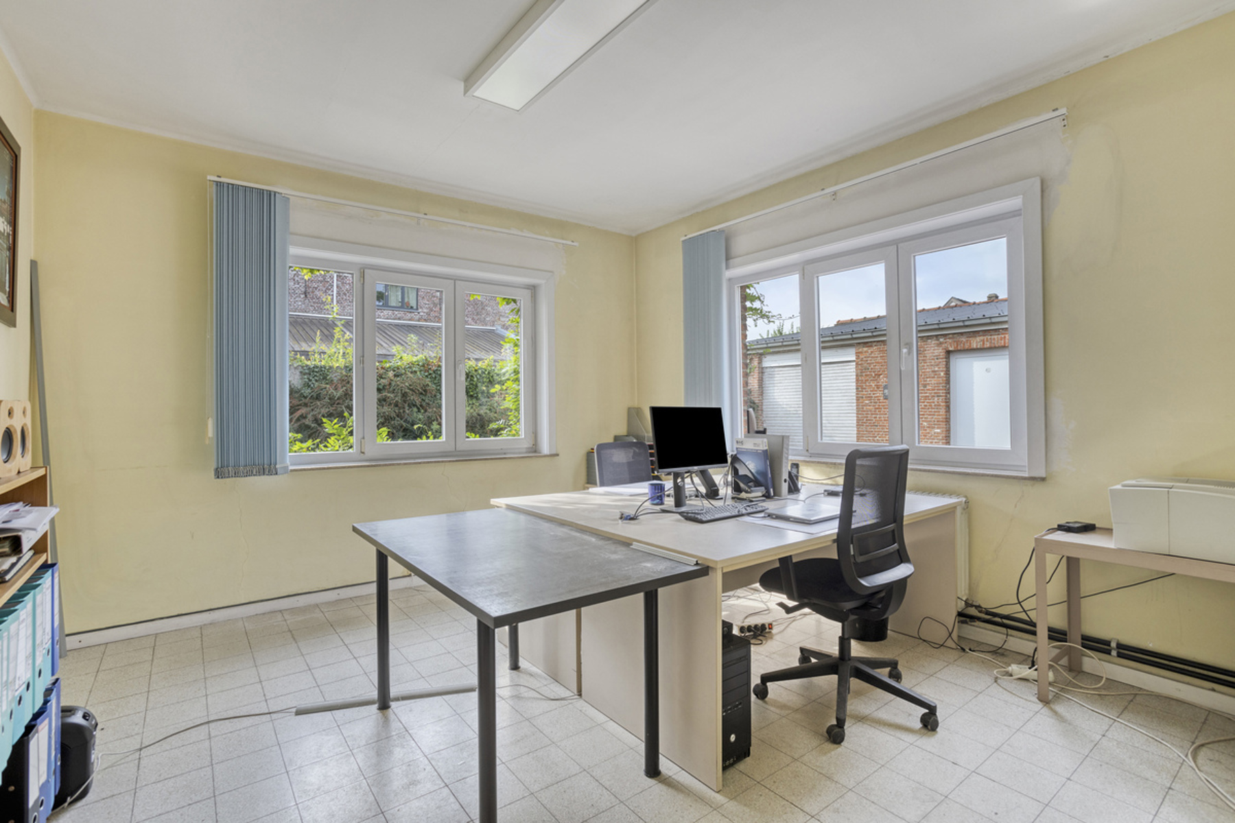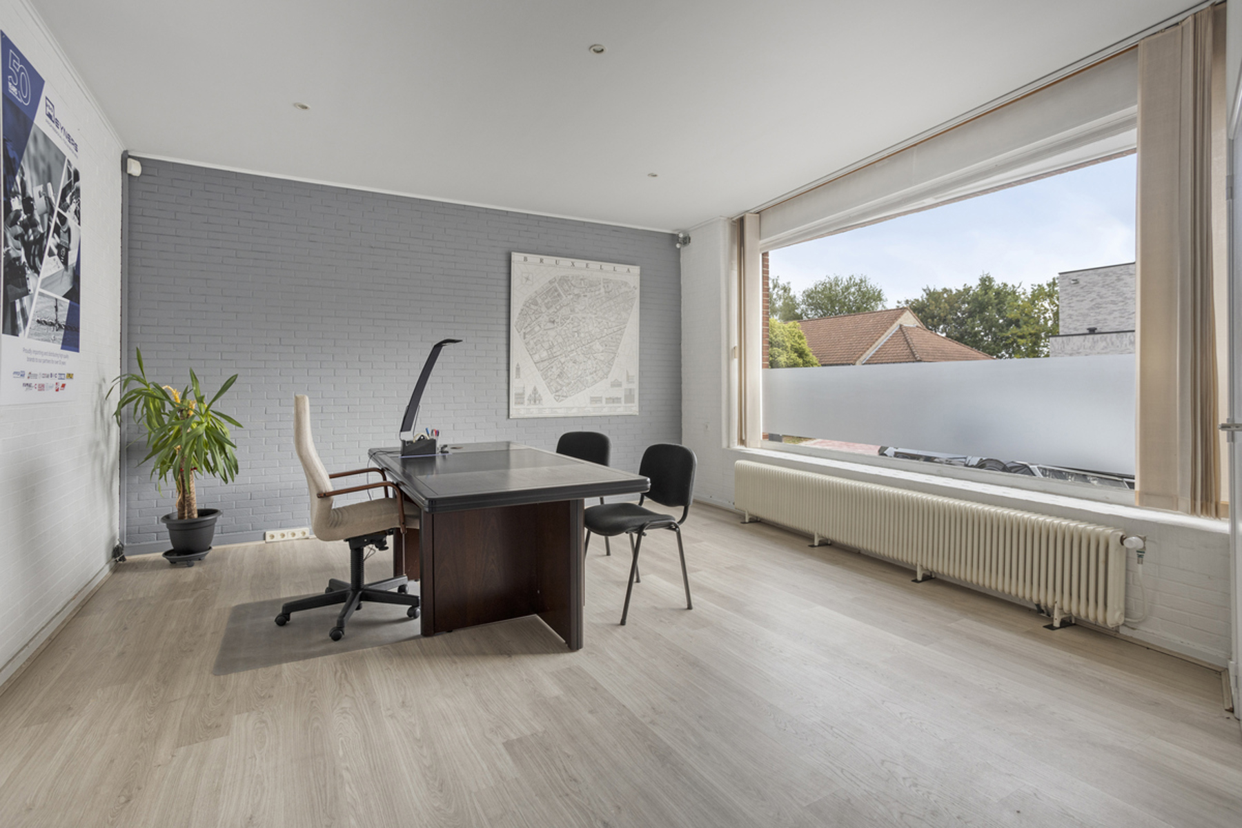 Eengezinswoning met een bewoonbare oppervlakte van +/-192m², ingedeeld als volgt: woonkamer (+/-49m²) - eetkamer (+/-21m²) - keuken (+/-9m²) - 2 slaapkamers (+/-19m² en +/-20m²) - bureau (+/-17m²) - badkamer (bad, wastafel en aansluiting voor wasmachine) - apart toilet.