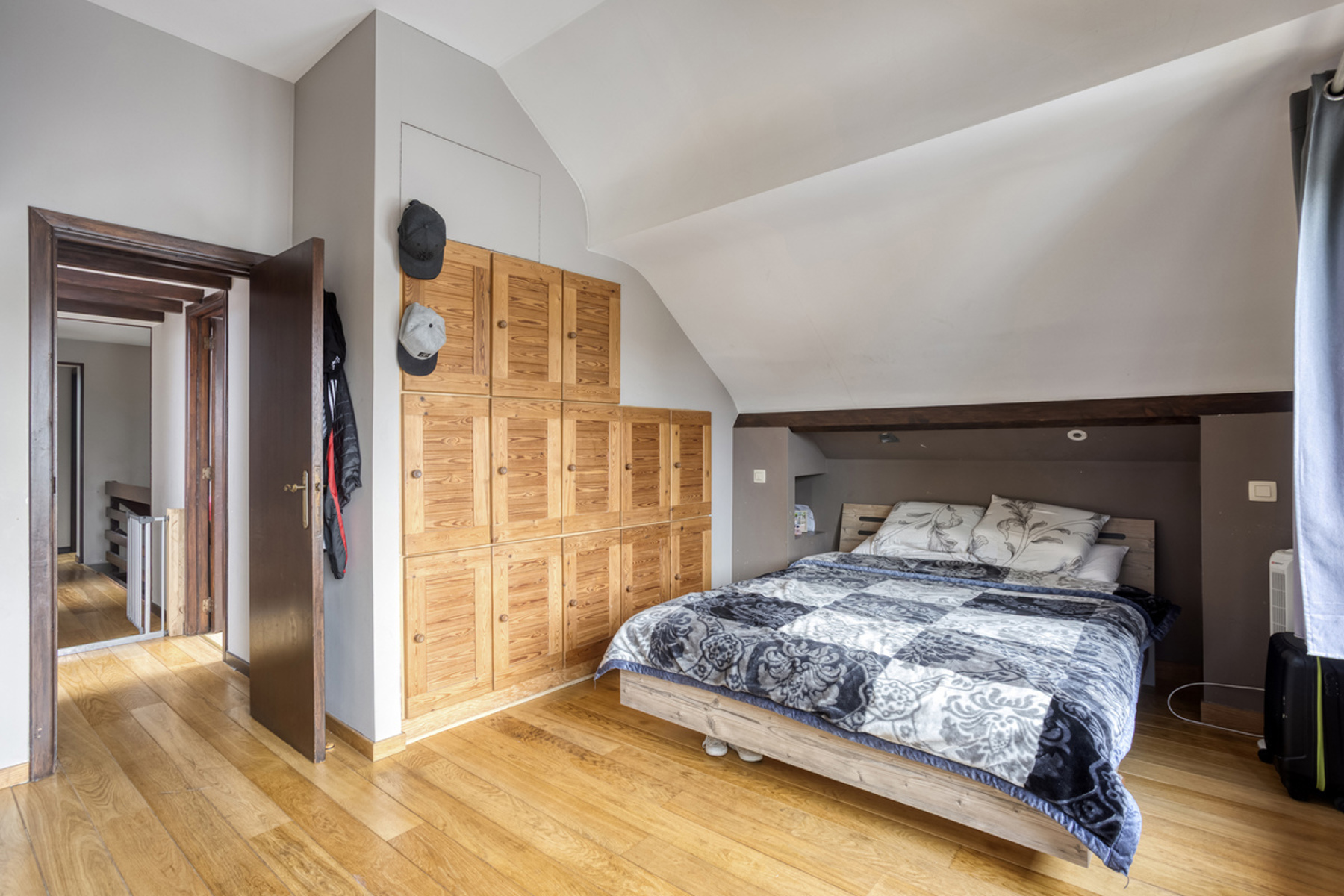 Eerste verdieping: 4 slaapkamers (+/-10m², +/-10m², +/-12m², +/-12m²)- badkamer (ligbad, dubbele lavabo)(+/-7m²)- masterbedroom met ingebouwde kasten (+/-16m²) met ensuite douchekamer (douche, lavabo)(+/-5m²) - apart toilet.